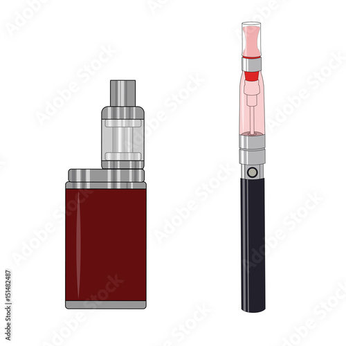 Набор значков сигарет для курения и вейпинга, векторная иллюстрация, изолированная на белом фоне. Курительная трубка, вейпер, сигара, электронные сигареты или вейпы и сигареты.