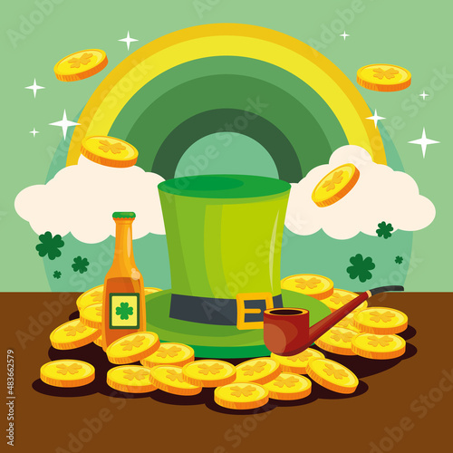 Закуски к пиву векторная плоская иллюстрация. Бутылка и бокал пива pilsner, чипсы, фисташки, гренки, раки, попкорн, миска с креветками. Композиция закусок для веб-баннера, страницы веб-сайта и т.д.
