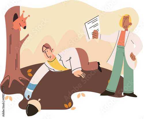 Микро-мужские и женские персонажи разрабатывают новые кроссовки для бега, шнуруют, рисуют и приклеивают огромные кроссовки, векторная иллюстрация. Процесс производства спортивной обуви, концепция производства обуви.