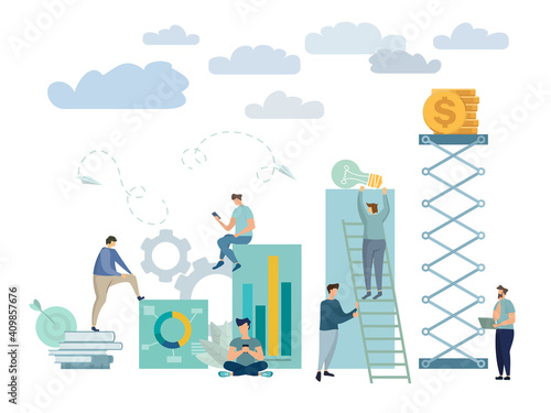 Снаряжение и снаряжение для сноуборда, векторная иллюстрация. Сноубордист мужского пола мультяшный персонаж готовится к катанию на сноуборде, выбирая крепления для сноуборда.