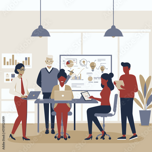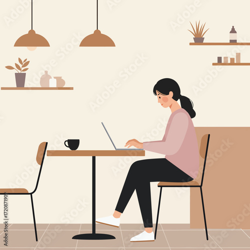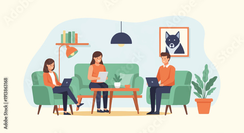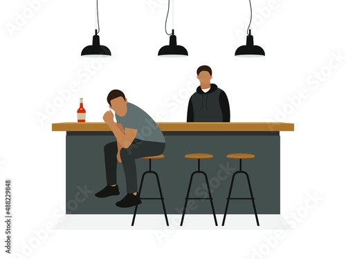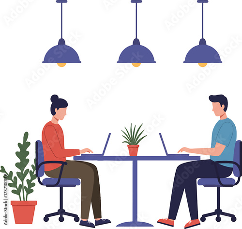 Социальное дистанцирование для открытия ресторанов, кафе, баров после Covid-19 концептуальная векторная плоская иллюстрация. Официант ресторана обслуживает пару, сидящую за столиком друг напротив друга на большом расстоянии.