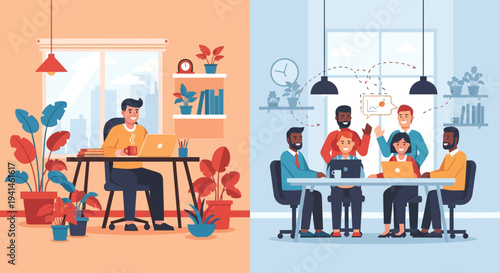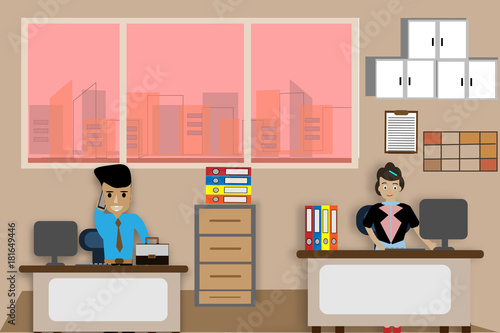 Иллюстрация концепции социального дистанцирования в приемном покое больницы. Векторный шаблон дизайна веб-сайта. Врач в клинике защищен стеклом от распространения коронавируса. Пациенты используют маску для лица в больнице.