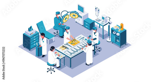 Координация в социальных сетях, производство видео, плоская векторная изометрическая иллюстрация. Люди, создающие видеоконтент в студии. Кампания в социальных сетях.