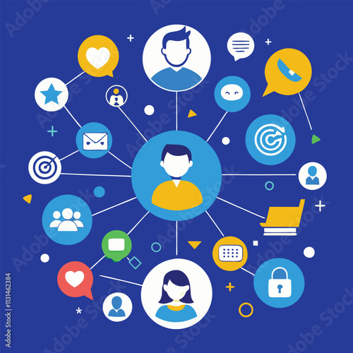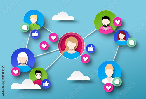 Коммуникация в социальной сети в сетевом векторе. Сообщество людей, ставящих лайки и комментирующих выступления в Интернете по всему миру. Международный бизнес и маркетинг, дружба и взаимодействие