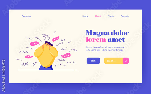 Векторный шаблон веб-сайта социальных сетей, дизайн веб-страницы и целевой страницы для разработки веб-сайтов и мобильных сайтов. Молодой человек, занимающийся серфингом в Сети, символы социальных сетей, такие как лайк, хэштег и т.д.