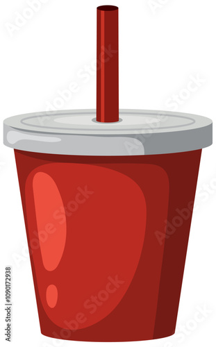 Чашка для газированного напитка с векторной иконкой через соломинку. Напиток на вынос в одноразовой упаковке-контейнере, выделенный на белом фоне
