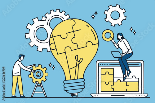 Солнечные панели, ветряные турбины, мужские и женские персонажи и земной шар, векторная иллюстрация дизайна в плоском стиле. Концепция возобновляемой зеленой солнечной энергии и эко-планеты для веб-баннера, страницы веб-сайта и т.д.