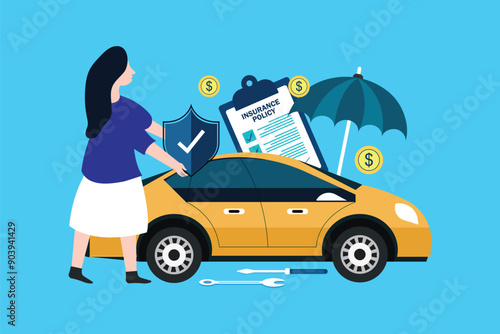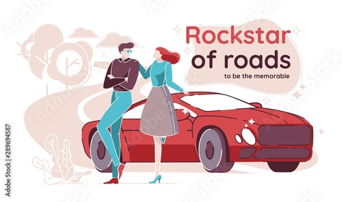 Зарядка электромобиля на зарядной станции для электромобилей перед солнечными батареями, мужские и женские персонажи, векторная иллюстрация. Экологичный транспорт, концепция солнечной зарядной станции.
