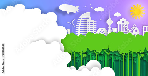 SOS, остановите загрязнение воздуха типографским шаблоном баннера. Векторная иллюстрация в стиле бумажного искусства. Выбросы промышленных предприятий, загрязнение города. Концепция сохранения окружающей среды, планеты, экологии.