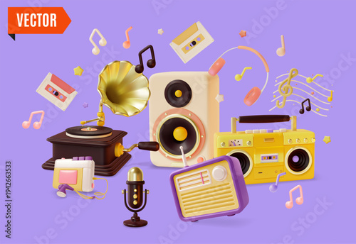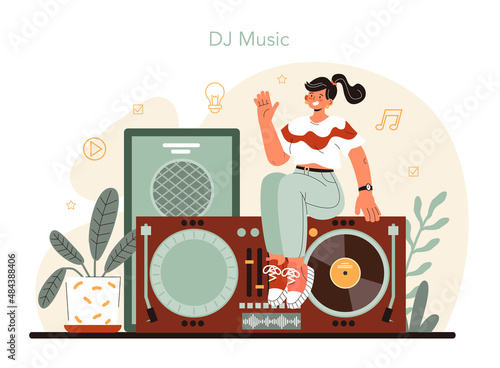 Звукорежиссер, инженер, создающий, микширующий, записывающий музыку, плоская векторная иллюстрация. Индустрия развлечений. Оборудование для производства звука.