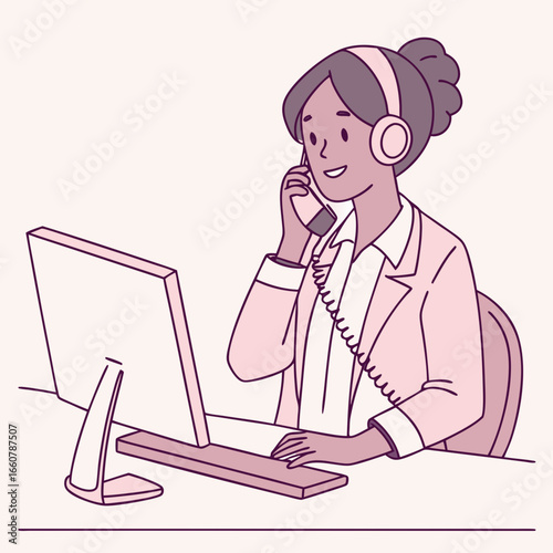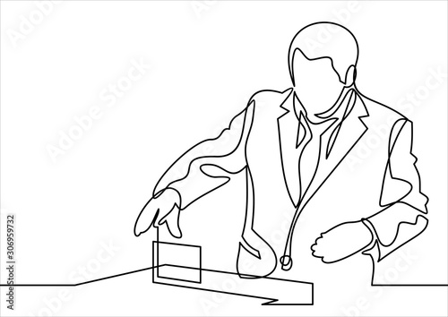 Звукорежиссер микширует треки векторным значком, выделенным на белом фоне