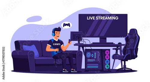 Векторная иллюстрация работников радиостудии-мужчин, производящих радиопрограмму с помощью звукозаписывающего оборудования. Элемент дизайна плоского стиля звукозаписывающего устройства.