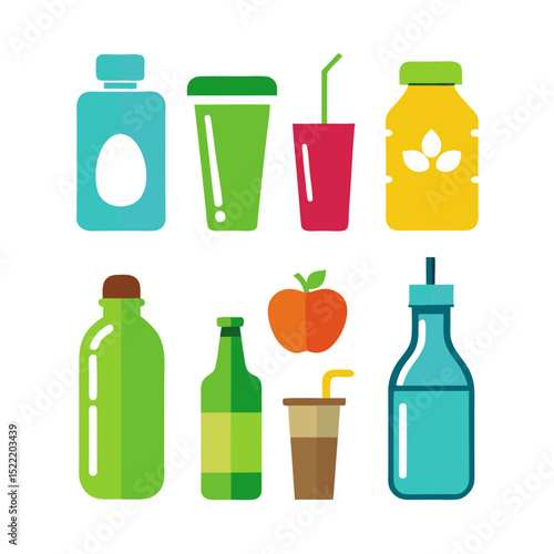 Набор соевого масла. Векторная реалистичная иллюстрация пластиковых и стеклянных бутылок с растительным соевым маслом с соевыми бобами и листьями.