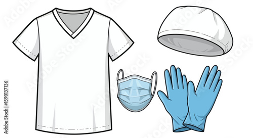 Набор макетов одежды для спа-салона, векторная иллюстрация, изолированная на белом фоне. Реалистично нарисованное вручную махровое пушистое полотенце, тапочки, роскошный халат для гидромассажных ванн.