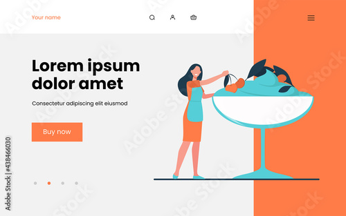 Векторная иллюстрация молодой женщины, наслаждающейся ароматическими банными процедурами. Элемент дизайна в плоском стиле Spa people, значок, выделенный на белом фоне.