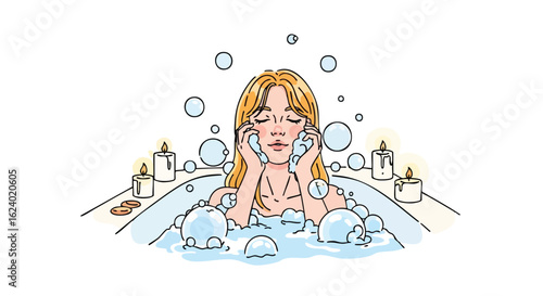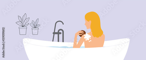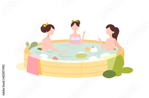 Векторная иллюстрация молодых женщин, наслаждающихся джакузи. Элемент дизайна в плоском стиле Spa people, значок, выделенный на белом фоне.