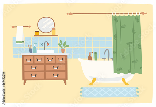 Векторная иллюстрация молодой женщины, наслаждающейся ароматическими банными процедурами. Элемент дизайна концепции обслуживания спа-салона в плоском стиле.
