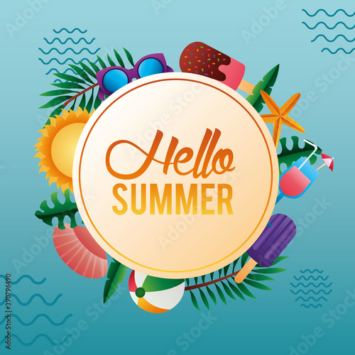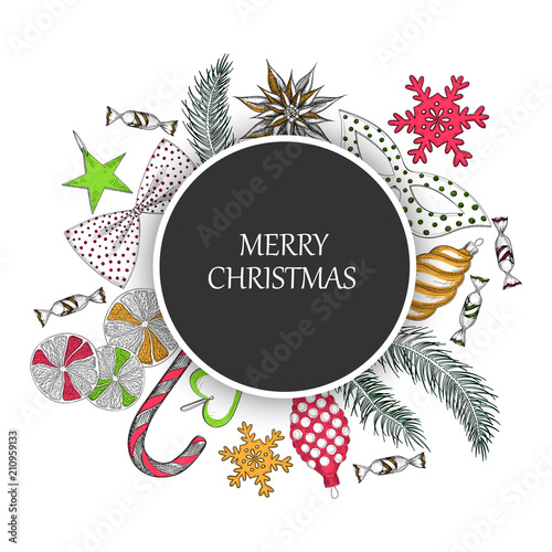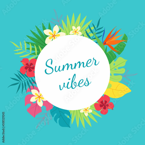 Круглая рамка спа-салона, векторная иллюстрация. Карточка спа-центра, шаблон этикетки с аксессуарами для ухода за кожей и красоты: бамбуковые стебли, пальмовые листья, камни, массажное масло, косметика, полотенца, ароматические свечи и т.д.