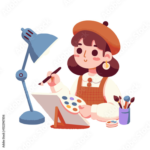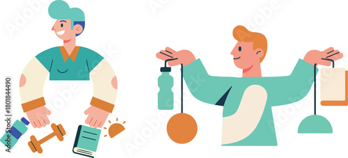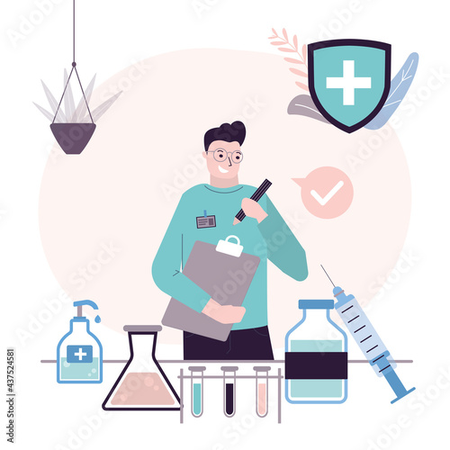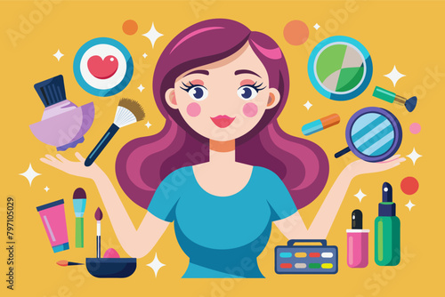 Женский массаж лица, векторная плоская иллюстрация. Спа-салон, салон красоты профессиональный персонал проводит расслабляющий, омолаживающий массаж лица. Уход за лицом.