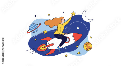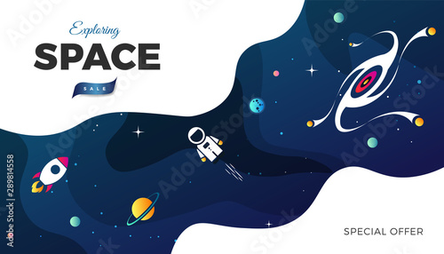 Астронавт в открытом космосе, Земля, Сатурн и другие планеты Солнечной системы, кометы, векторная иллюстрация в стиле бумажного искусства. Космическое путешествие, концепция астрономической науки.