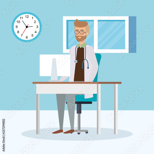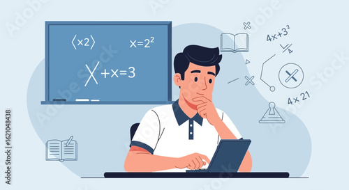 Векторная иллюстрация ученого, инженера-конструктора с ракетой. Освоение космоса, разработка концепции ракетно-космической техники. Элемент дизайна в плоском стиле, значок, выделенный на белом фоне.