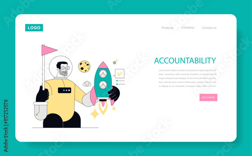 Шаблон космической целевой страницы. Векторная концепция дизайна в плоском стиле для создания космического веб-сайта и мобильного сайта. Телескоп, спутник, ракета, астронавт, классная доска, планета Земля, компьютер и т.д.
