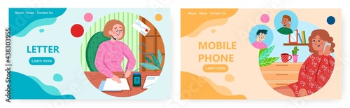 Особенный внешний вид, люди с проблемной кожей. Дизайн целевой страницы, набор шаблонов баннеров веб-сайта, плоская векторная иллюстрация. Женские персонажи с повязкой на глазу и прыщами на лице смотрят в зеркало.