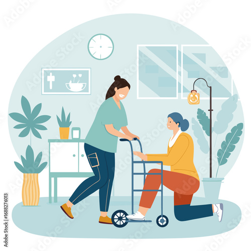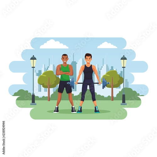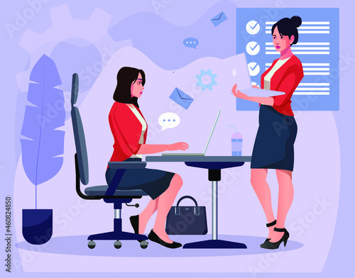 Занятия спортом и фитнесом. Две молодые женщины делают упражнения для фитнеса, плоская векторная иллюстрация. Тренировка в тренажерном зале, групповые тренировки. Активный и здоровый образ жизни.