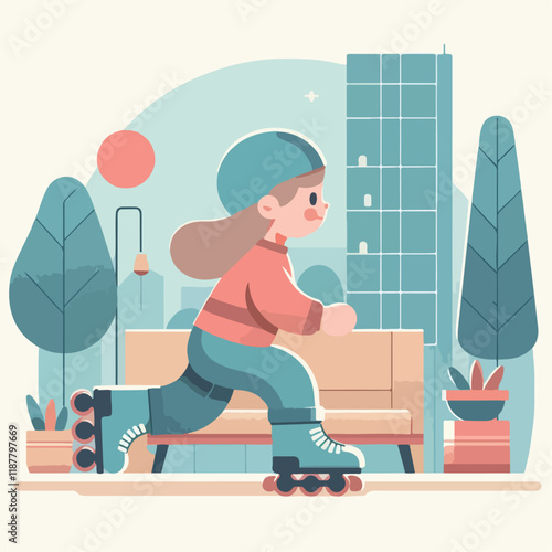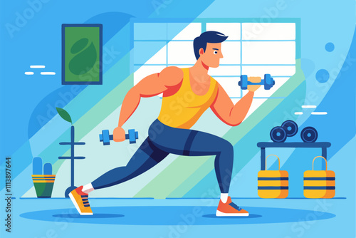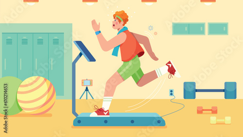 Занятия спортом и фитнесом. Молодая женщина, выполняющая аэробные упражнения кенгуру, плоская векторная иллюстрация. Тренировка прыжков с кангу. Тренировка в фитнес-зале. Активный и здоровый образ жизни.