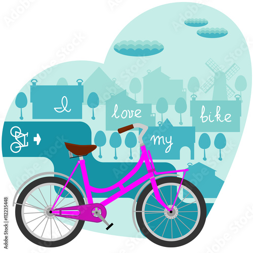 Иллюстрация дизайна векторного плоского стиля спортивного велосипеда. Велосипед, велосипедная одежда, защитный шлем, солнцезащитные очки и перчатки. Композиция велосипедной одежды и велосипедного снаряжения для веб-баннера, страницы веб-сайта и т.Д