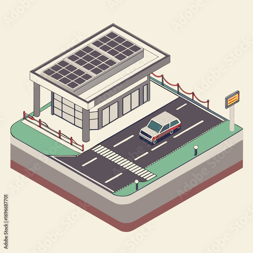Набор векторных изометрических значков спортивного стадиона. Концепции бокса, волейбола, Футбола и тенниса. Открытые спортивные площадки для проведения чемпионатов, тренировок с игровым полем, кортом, боксерским рингом и зоной для зрителей.
