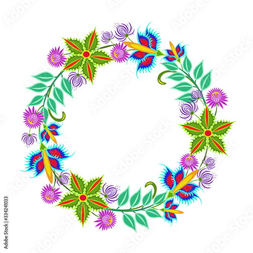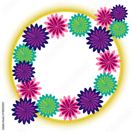 Весенняя цветочная круглая рамка, векторная иллюстрация в стиле бумажного художественного ремесла. Красивая сезонная композиция с вырезанными из бумаги цветами для открытки, плаката, баннера и т.д.