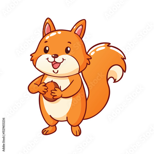 Вектор белки. Иллюстрация милого лесного животного из мультфильма. Бурундук со значком осеннего сбора орехов, выделенным на белом фоне