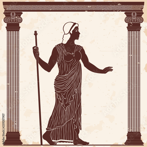 Статуя бога справедливости Фемиды. Фемида с равновесием и мечом. Векторная иллюстрация в стиле ретро комиксов поп-арта. Закон и правовая концепция.