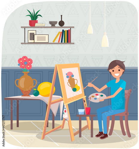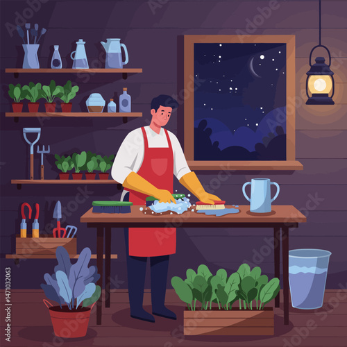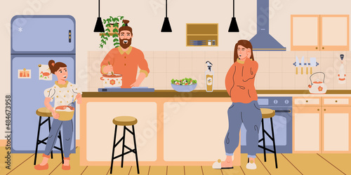 Шаблон векторного плаката "Оставайся дома". Люди читают книги, пекут пироги, занимаются йогой дома, соблюдая правила карантина по коронавирусу, ограничения, чтобы остановить распространение болезни COVID-19. Самоизоляция.