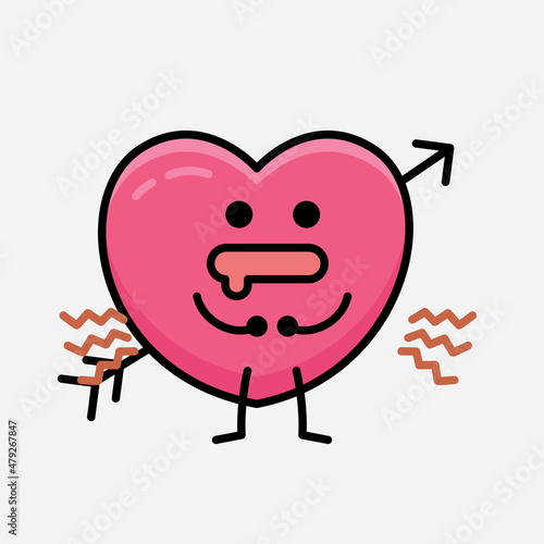 Вектор боли в животе. Значок боли в животе. Грустный мультяшный персонаж, чувствующий боль во внутреннем органе пищеварения человека, выделенный на белом фоне