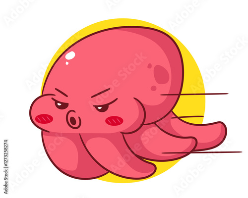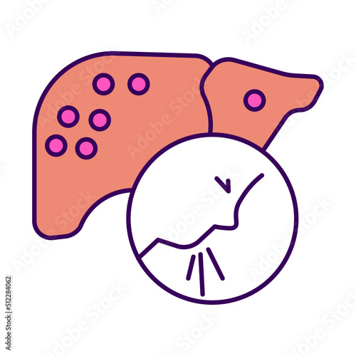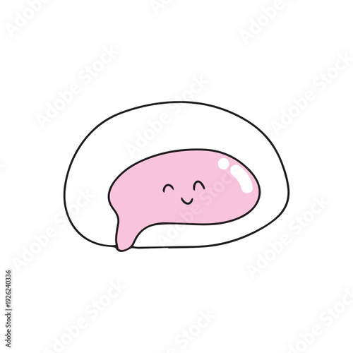 Вектор вздутия живота. Значок боли в животе. Грустный мультяшный персонаж из внутреннего органа пищеварения человека, испытывающий боль и метеоризм, выделенный на белом фоне