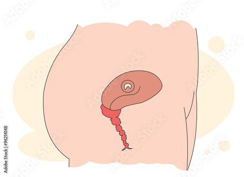 Вектор рвоты и тошноты в желудке. Боль в животе, пищеварительный рефлюкс и значок боли. Симпатичный персонаж из внутреннего органа пищеварения человека чувствует себя плохо на иллюстрации, выделенной на белом фоне