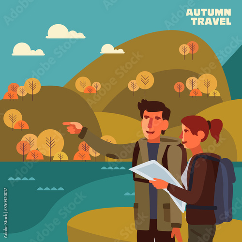 Семейная пара каменного века готовит мясо на открытом огне рядом со своим пещерным домом. Векторная иллюстрация дизайна в плоском стиле.