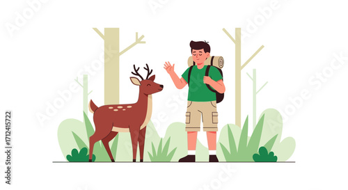 Люди каменного века, два охотника с дубинкой и копьем, преследующие косулю. Векторная иллюстрация дизайна в плоском стиле.