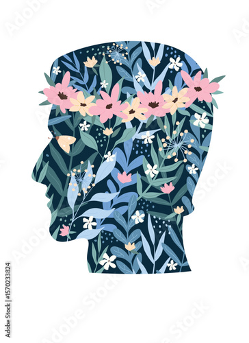 Остановить вырубку тропических лесов плакат, шаблон баннера. Зеленые растения джунглей и дикие животные внутри силуэта головы человека, векторная иллюстрация в стиле бумажного искусства. Спасите тропические леса и планету Земля.