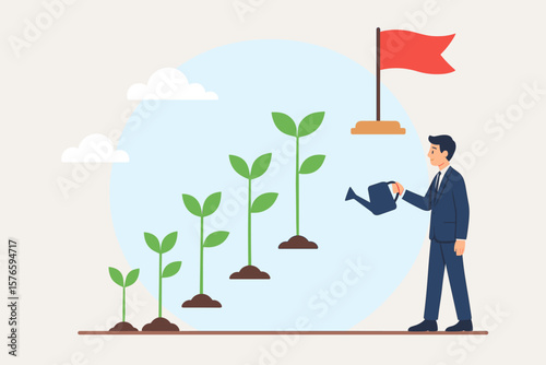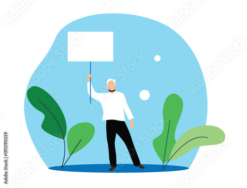 Векторная иллюстрация концепции штормовой, ветреной и дождливой погоды. Молодой человек попал под сильный дождь с грозой и молнией, дизайн в плоском стиле.