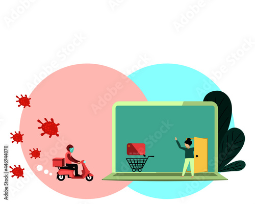 Векторная иллюстрация концепции уличного кофе в плоском стиле. Кофейня, ларек, киоск, продавщица и покупатель с кофе.