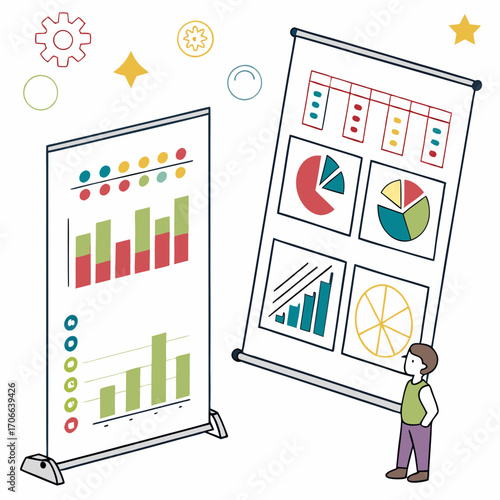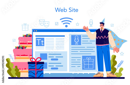 Уличная кофейня с бариста, готовящим кофе, плоская векторная иллюстрация. Уличное кафе малого бизнеса.