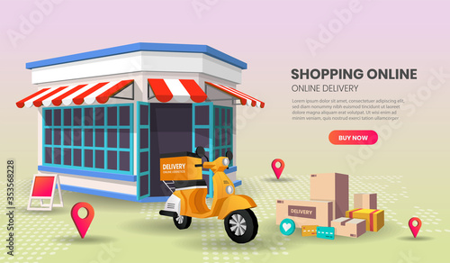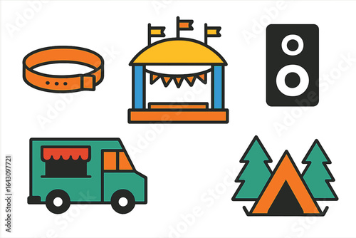Уличные тележки с кофе, хот-догами, мороженым. Грузовик быстрого питания, фестивальный ларек. Векторная иллюстрация концепции малого бизнеса в плоском стиле. Бариста в кафе, женщина продает цветы в магазине.