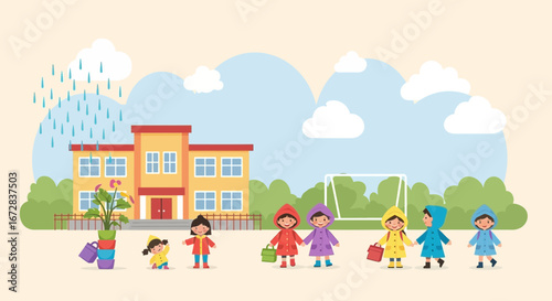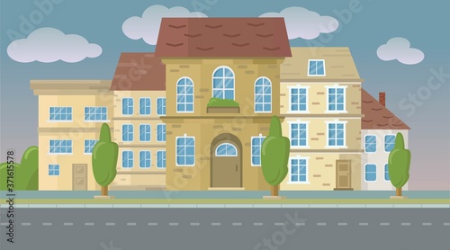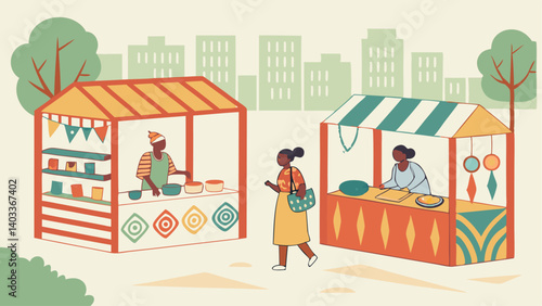 Векторный баннер концепции фестиваля уличной еды. Люди продают еду из киосков в парке. Концепция уличного кафе.