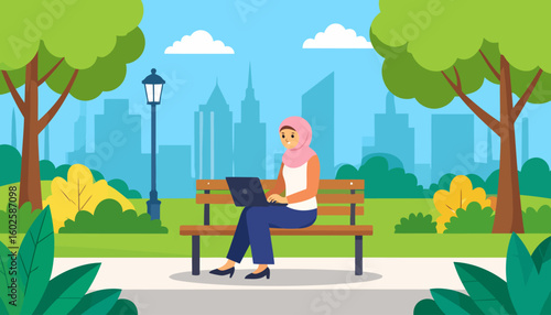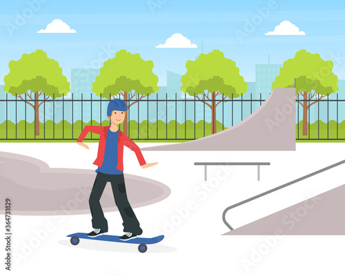Уличные хулиганы в маске для лица и толстовке с капюшоном пинают мусорный бак и ломают скамейку битой в городском парке, плоская векторная иллюстрация. Уличные вандалы наносят ущерб общественному имуществу. Вандализм, агрессия.