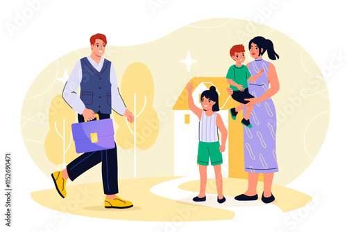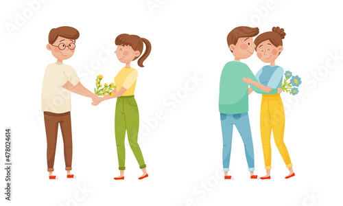 Векторная иллюстрация счастливой молодой пары с рожками мороженого. Уличные люди, держащиеся за руки, элемент дизайна в плоском стиле, значок, изолированный на белом фоне.