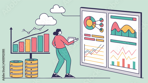 Векторная иллюстрация женщины, идущей за покупками в магазин. Элемент дизайна уличного движения и концепции магазинов в плоском стиле.