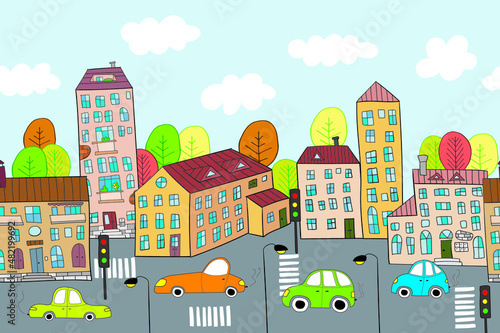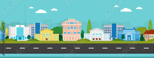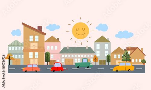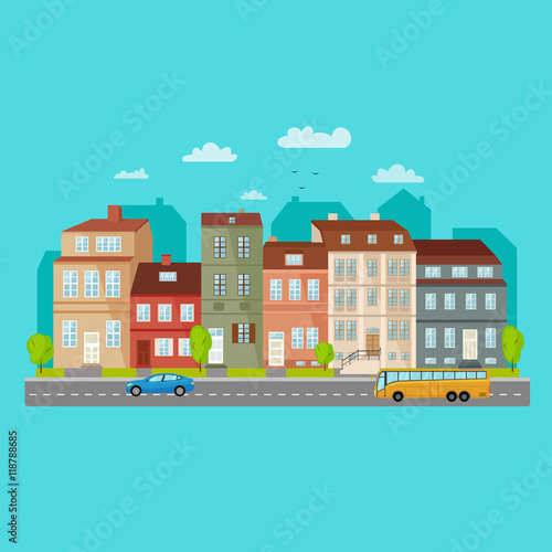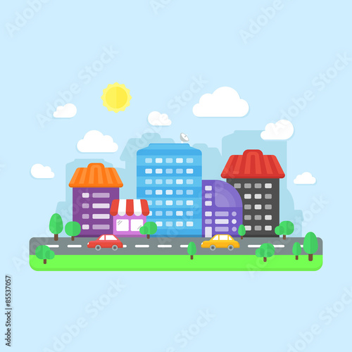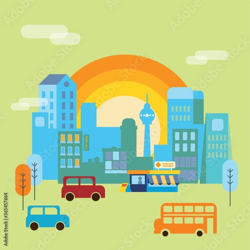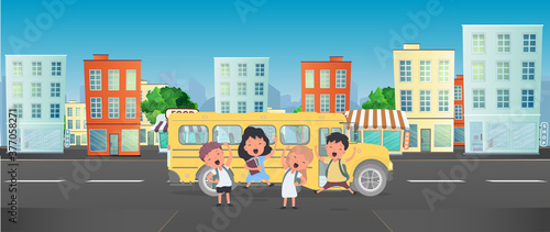 Векторная иллюстрация концепции уличного движения в плоском стиле. Уличные продуктовые лавки, киоски. Люди, продавцы и покупатели. Пара переходит улицу.